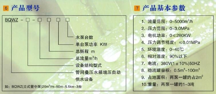 水是人類(lèi)賴(lài)以生存的寶貴資源,尤其是飲用水資源更是直接與我們的生命和健康息息相關(guān),密不可分,飲用水的安全已成為全世界共同面對(duì)的問(wèn)題,我廠儂靠自身強(qiáng)大的科研實(shí)力通過(guò)長(zhǎng)期不懈的努力,在飲用水供水領(lǐng)域已取得較大的成績(jī)與突破,在十幾年前就在全國(guó)首先推出了無(wú)負(fù)壓變頻自動(dòng)供水設(shè)備。在此基礎(chǔ)上又經(jīng)過(guò)多年的市場(chǎng)調(diào)查、應(yīng)用、反復(fù)研究、論證與推敲,我廠又研發(fā)出全國(guó)獨(dú)一無(wú)二,最為先進(jìn)、合理、科學(xué)、節(jié)能、環(huán)保的創(chuàng)新性產(chǎn)品, BQWZ型管網(wǎng)疊壓無(wú)負(fù)壓水箱增壓全能變頻自動(dòng)供水設(shè)備,它的主要特點(diǎn)是吸取了管網(wǎng)疊壓無(wú)負(fù)壓、箱式無(wú)負(fù)壓設(shè)備的所杳優(yōu)點(diǎn)、功能,也同時(shí)解決以上設(shè)備中存在的所有不足與困惑,它的出現(xiàn),我們堅(jiān)信它可以滿(mǎn)足全國(guó)各地在任何場(chǎng)合、任何條件都能安全可靠使用,而且更加節(jié)能環(huán)保。