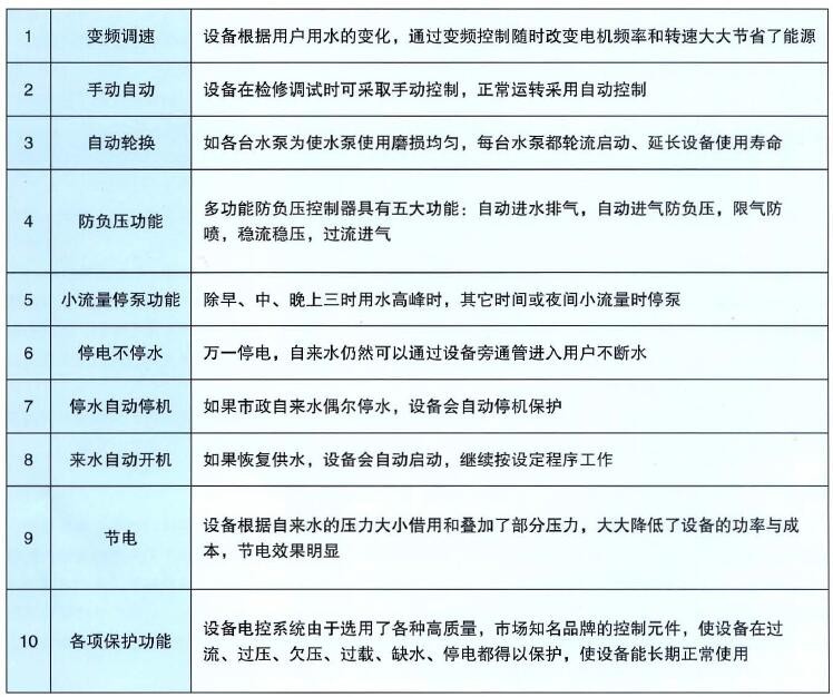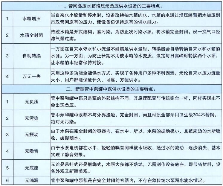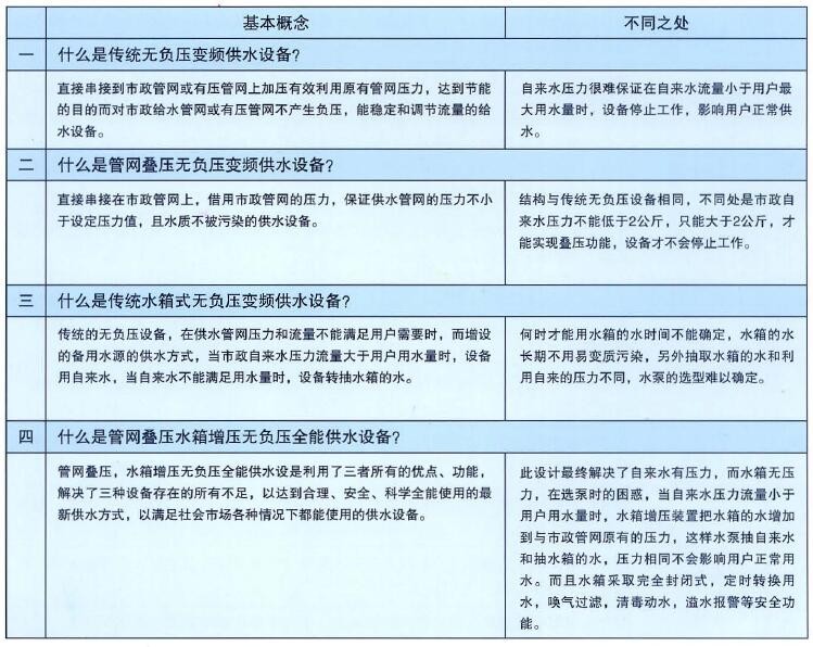 各類(lèi)無(wú)負(fù)壓設(shè)備的主要特點(diǎn)